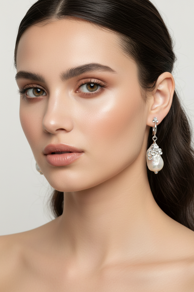 100% pure and authentic 925 (stamp) sterling silver earrings studded with precious zircons and 100% real pearl.