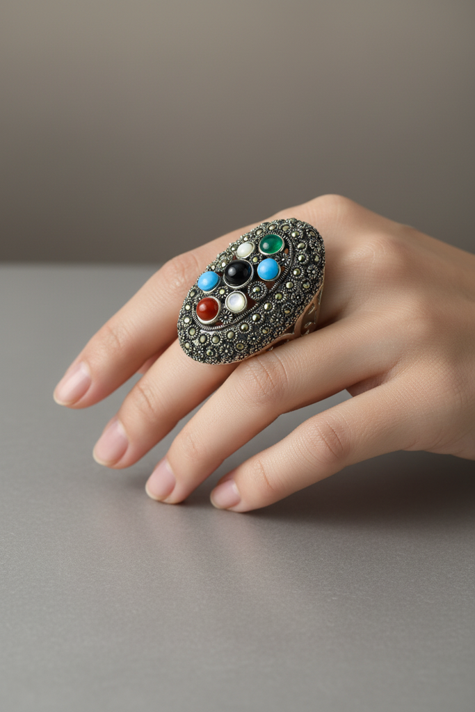 100% pure and authentic 925 silver ring studded with original nau ratan stones.