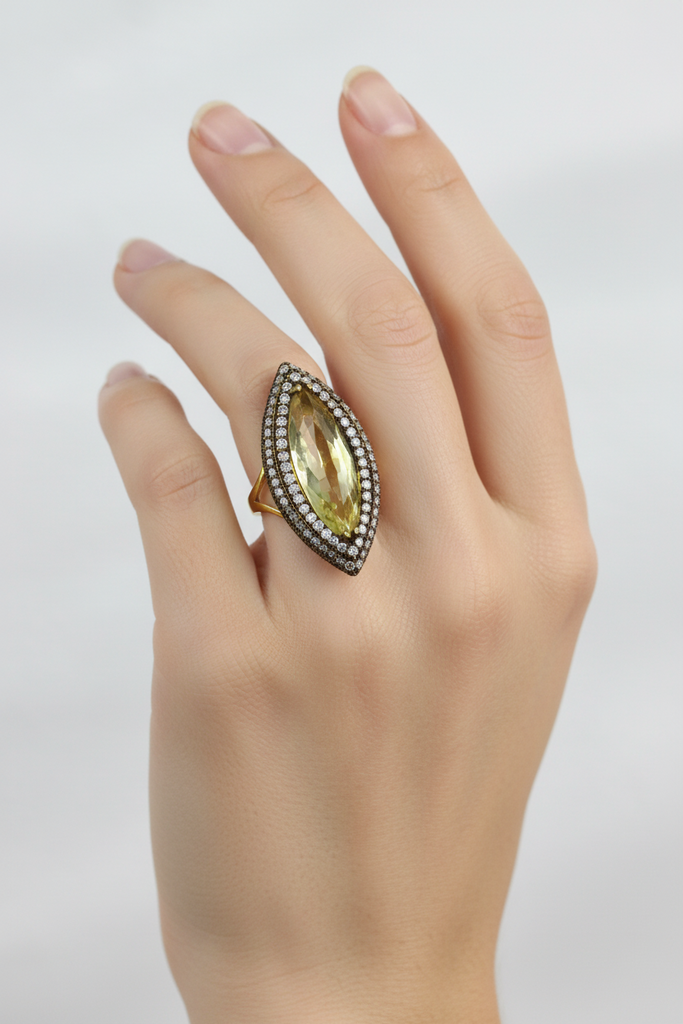 100% pure and authentic 925 silver ring studded with precious zircons and stones.
