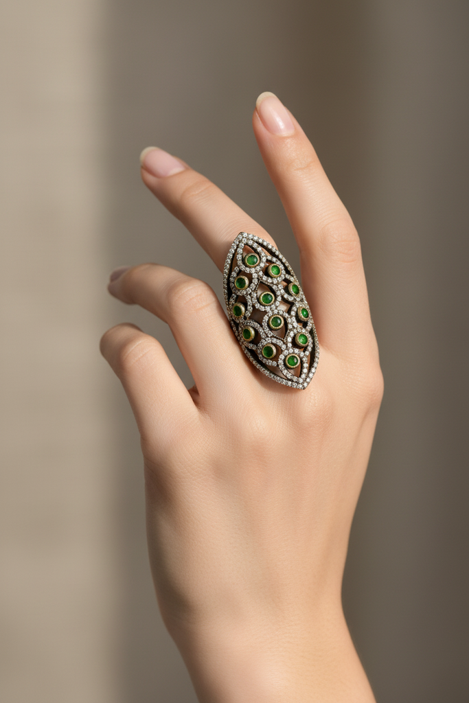 100% pure and authentic 925 silver ring studded with precious zircons and stones.