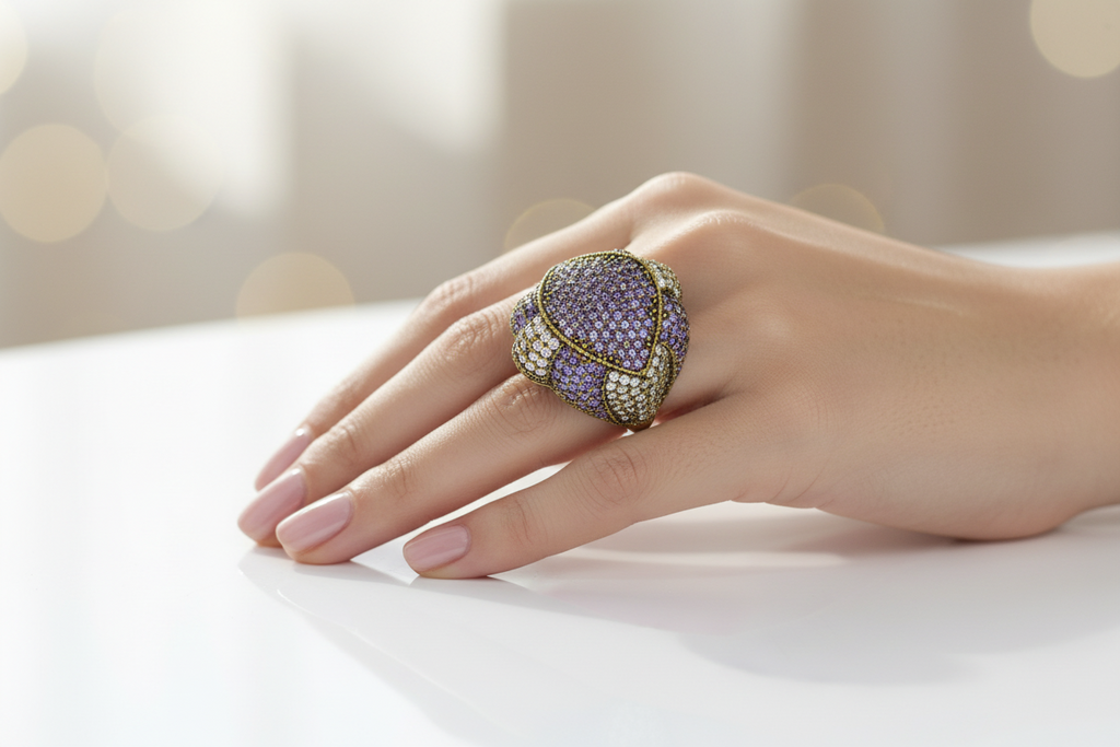100% pure and authentic 925 silver ring studded with precious zircons and stones.