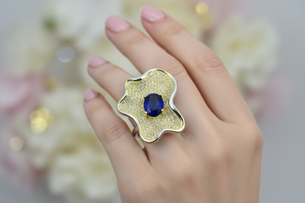100% pure and authentic 925 silver ring studded with precious zircons and stones.