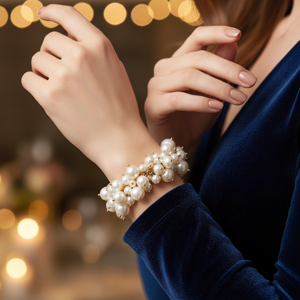 High Quality Gold plated very beautiful loose bracelet studded with real precious pearls. Premium quality👌