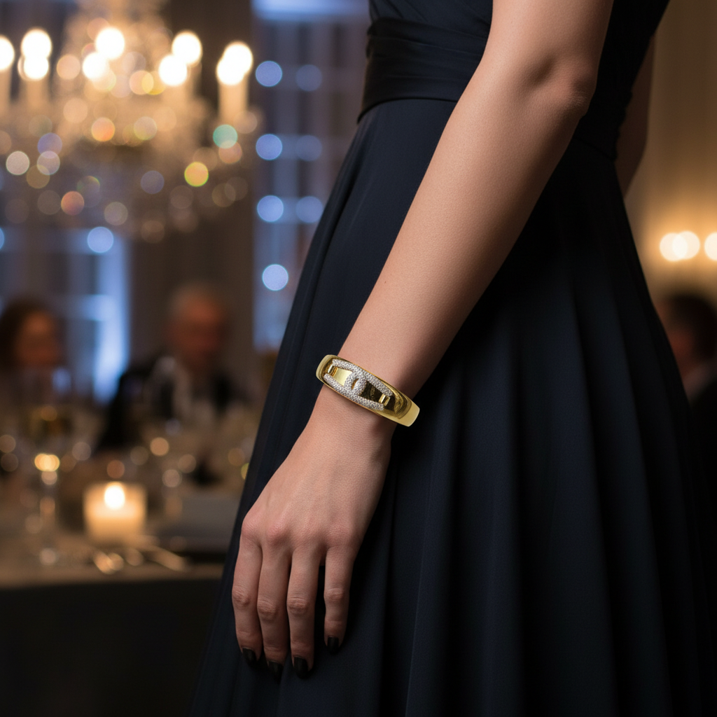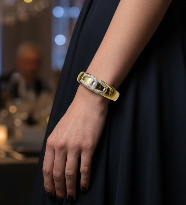 High Quality Gold and Rodhium Plated very beautiful open able Channel bangle studded with real precious micro zircons. Premium quality👌