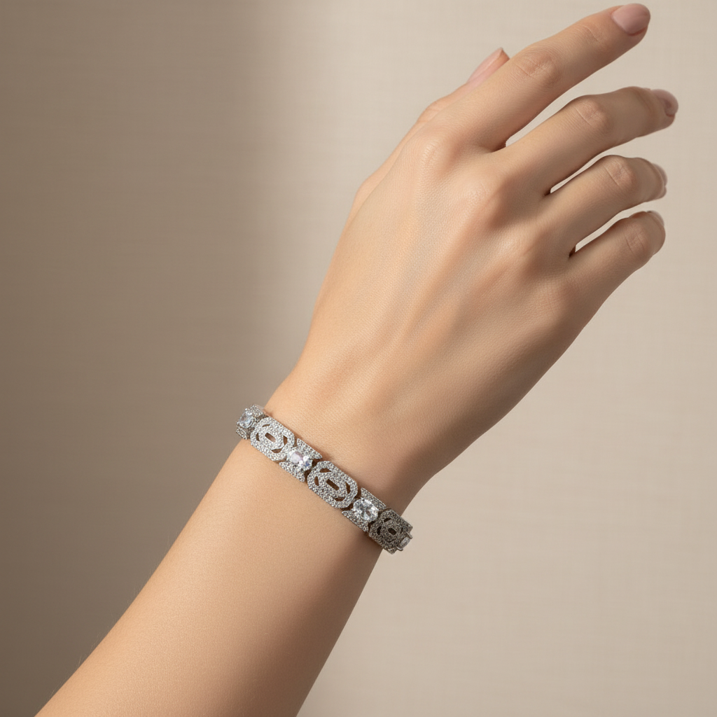 High Quality Rodhium Plated loose bracelet studded with real precious micro zircons and real stones. Premium quality👌