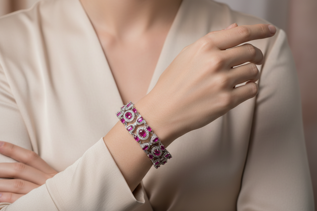 High Quality Rhodium Plated loose bracelet studded with real precious micro zircons and real stones. Premium quality👌