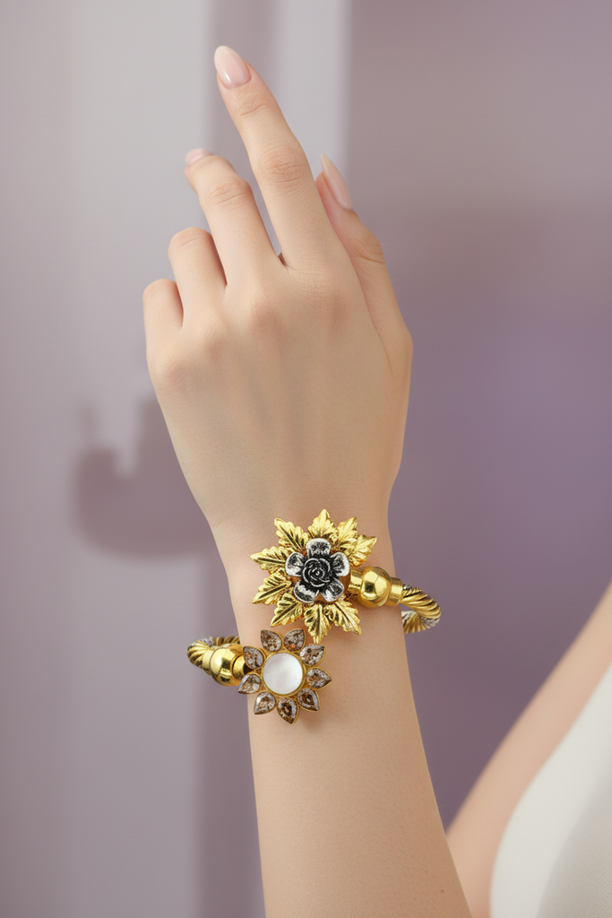 22k high quality gold + rhodium plated high quality signature bangle studded with real stones.