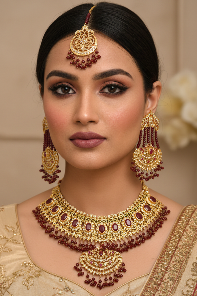 Set includes: Necklace, Earrings, Maang Tika