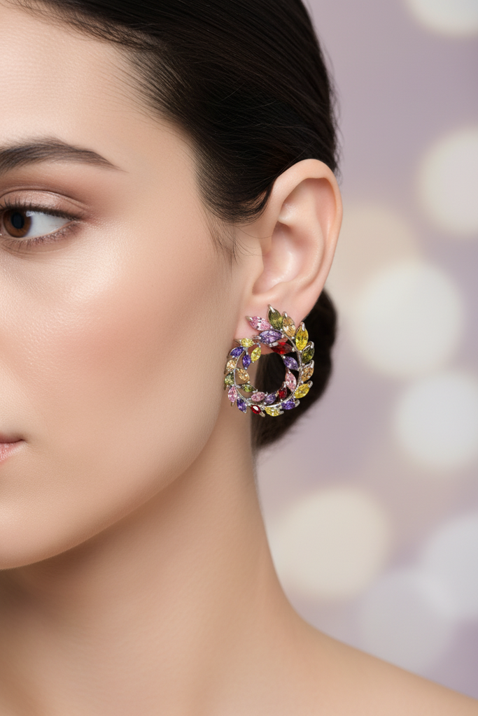 High quality rhodium plated earrings studded with real stones.