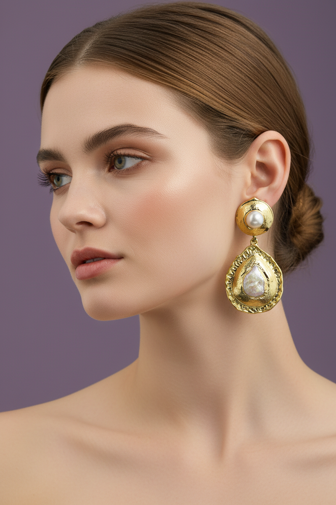High quality gold plated earrings studded with real pearls.
