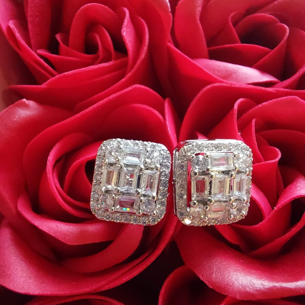 High quality rodhium plated very elegant diamond look ear studs studded with precious micro zircons. Premium quality 👌