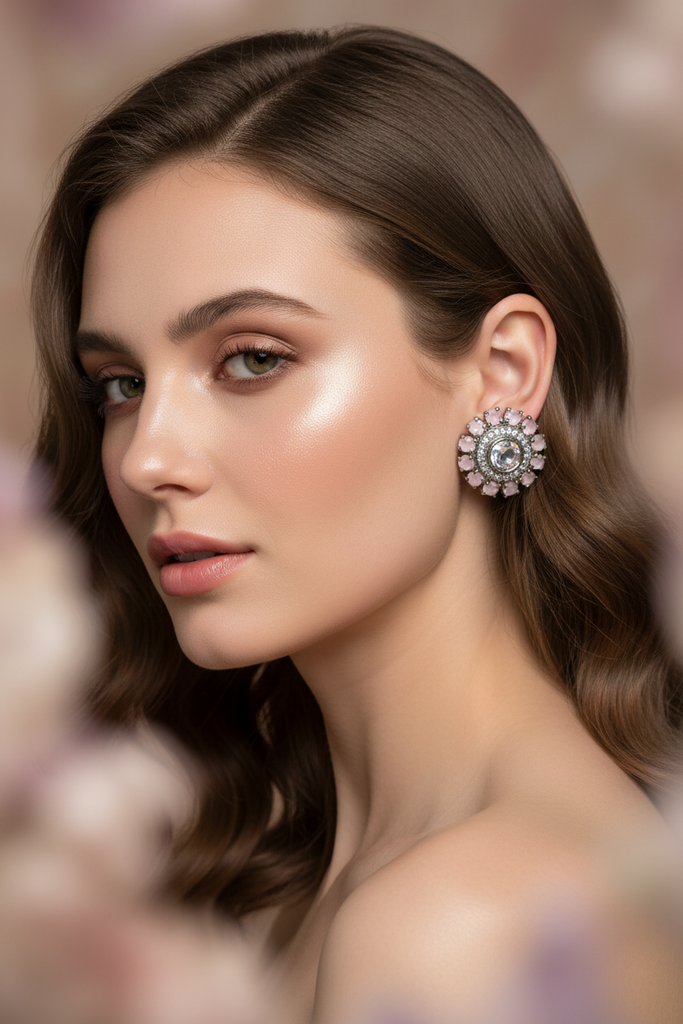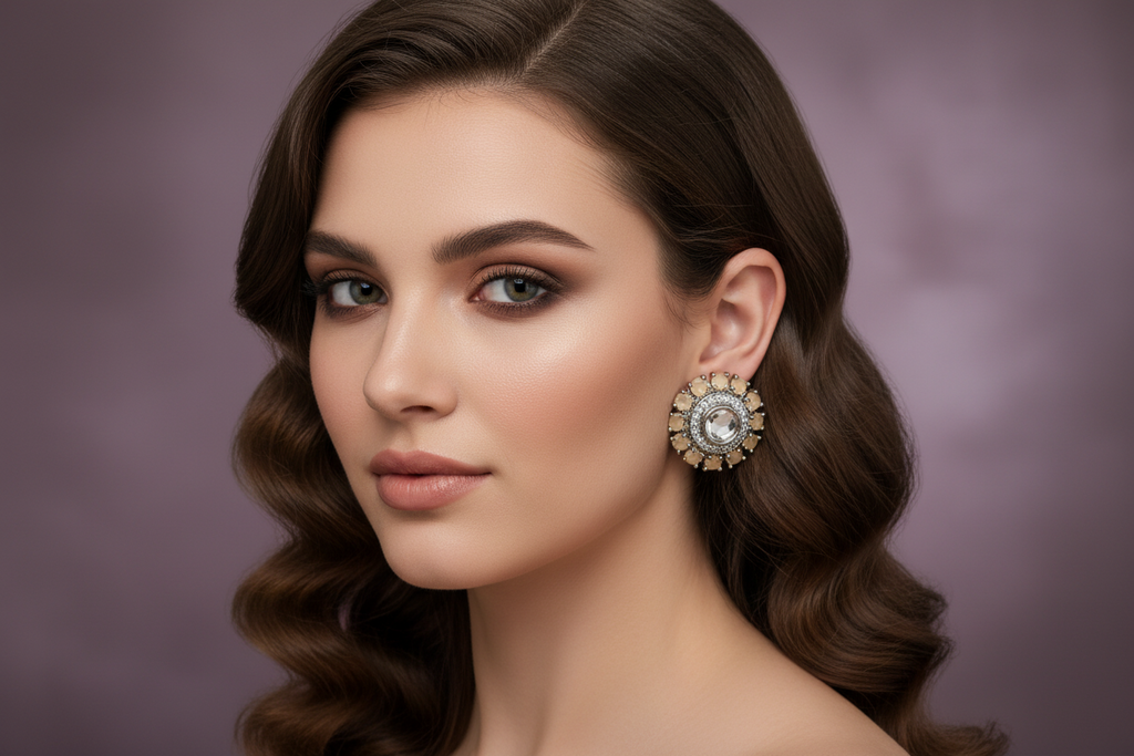 High quality rhodium plus gold platted earrings studded with precious stones.