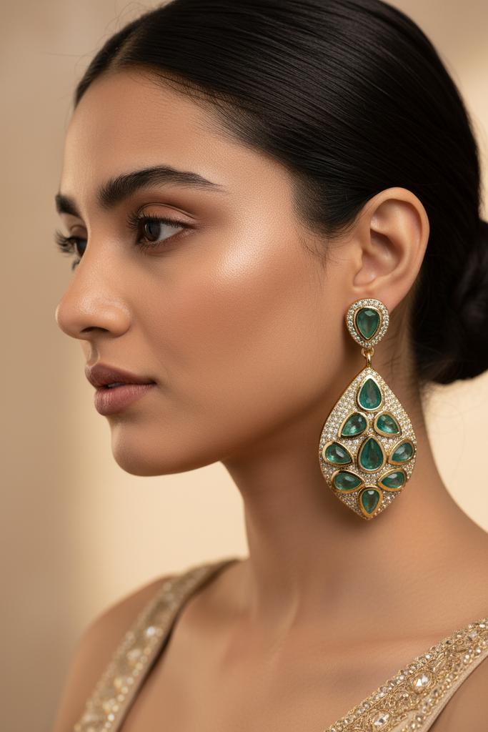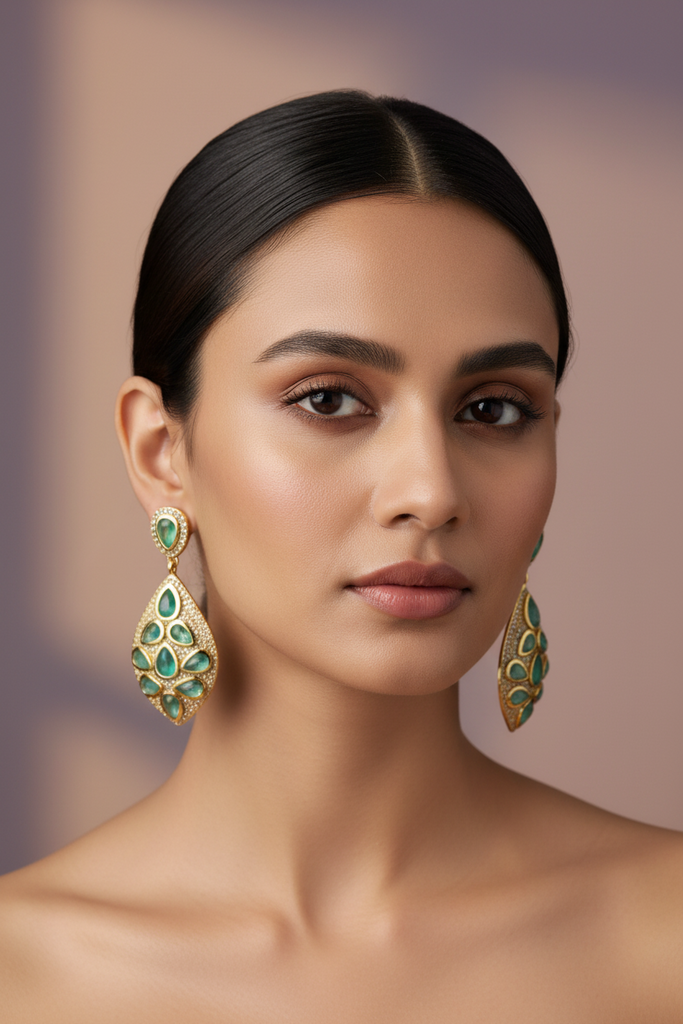 High quality rode gold plated earrings studded with precious micro zircons and real stones.