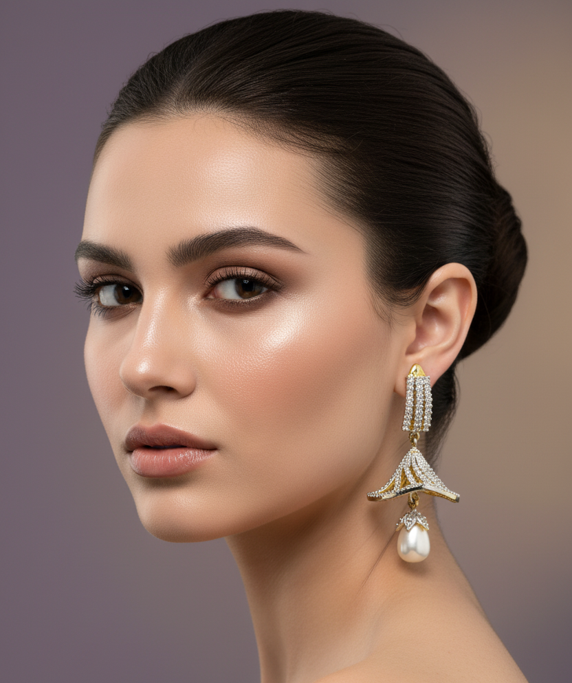 High quality gold +rhodium plated earrings studded with precious zircons and stones.