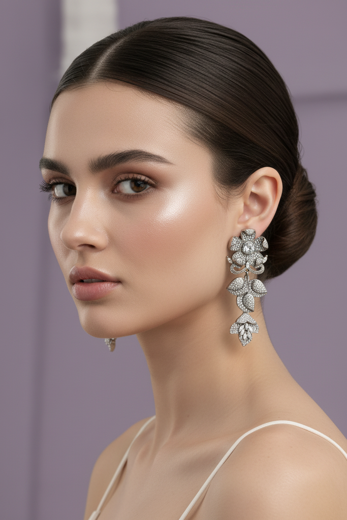 High quality gold + rhodium plated earrings studded with precious zircons and real stones.
