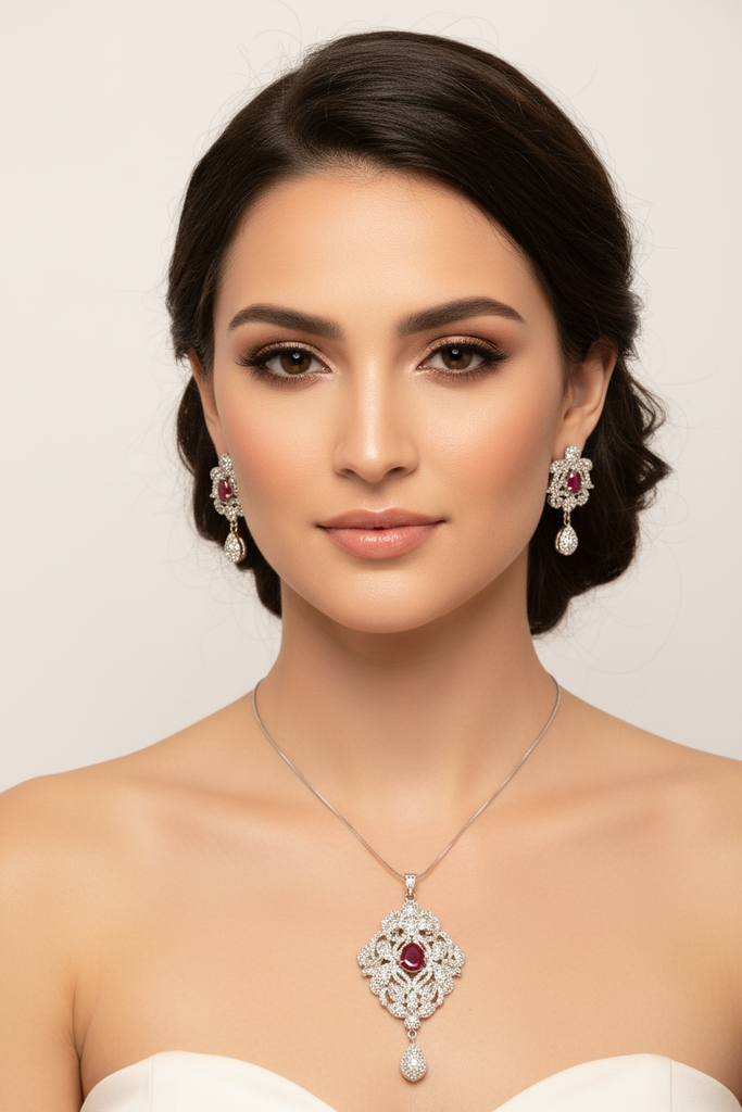 High quality gold + rhodium plated very beautiful and elegant Pendant set studded with precious zircons.