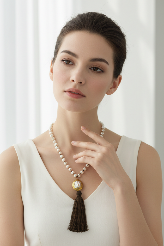 Very elegant and beautiful long length Turkish Maala studded with real mother Pearls