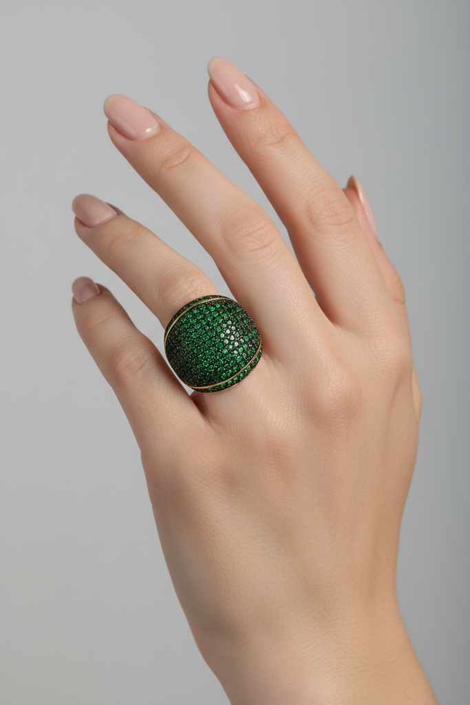 High quality gold + rhodium plated ring studded with real zircons.