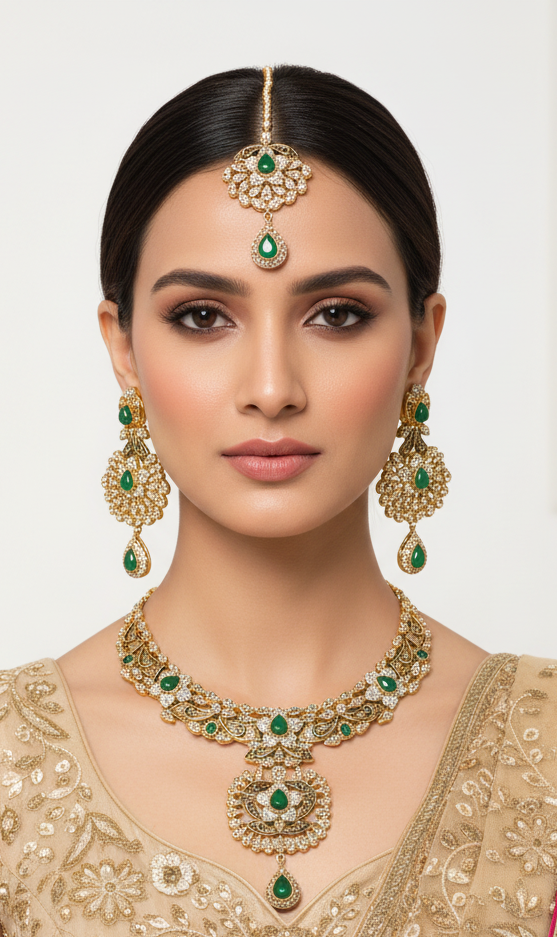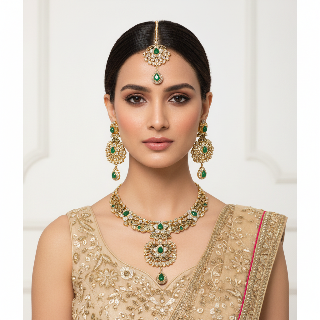 Set includes: Necklace, Earrings, Maang Tika & Jhoomer