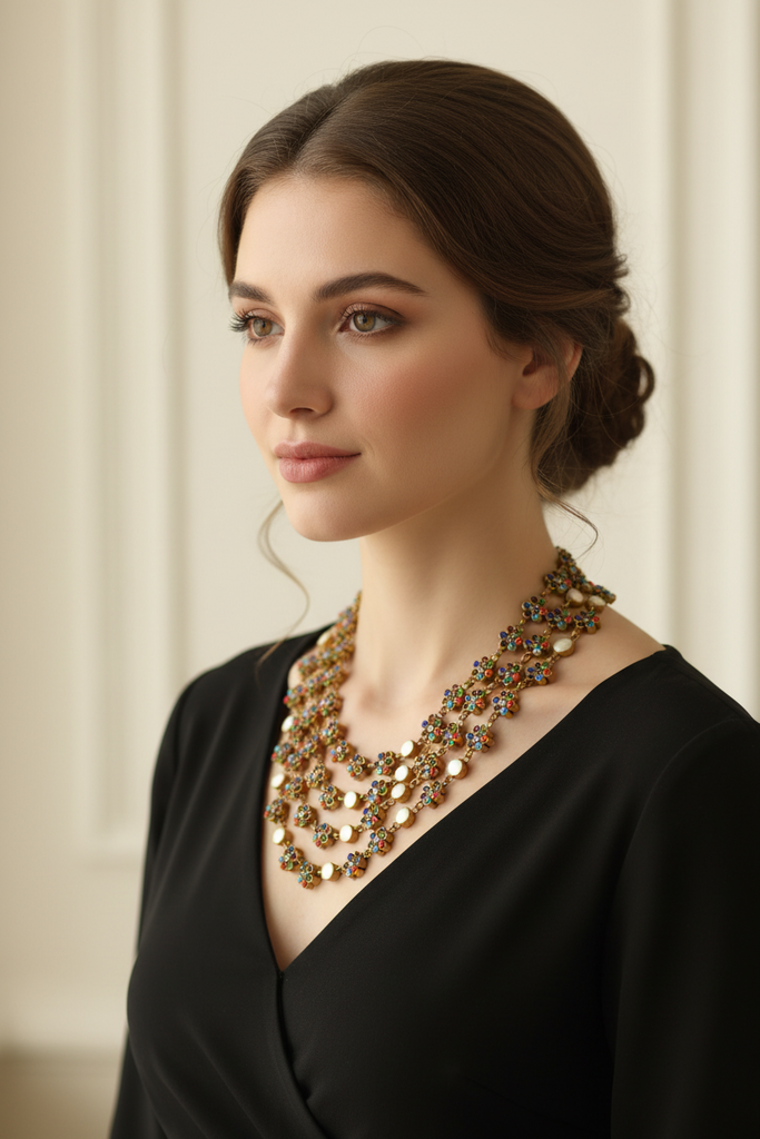 22k high quality gold plated handmade kundan maala set studded with real nau rattan stones.