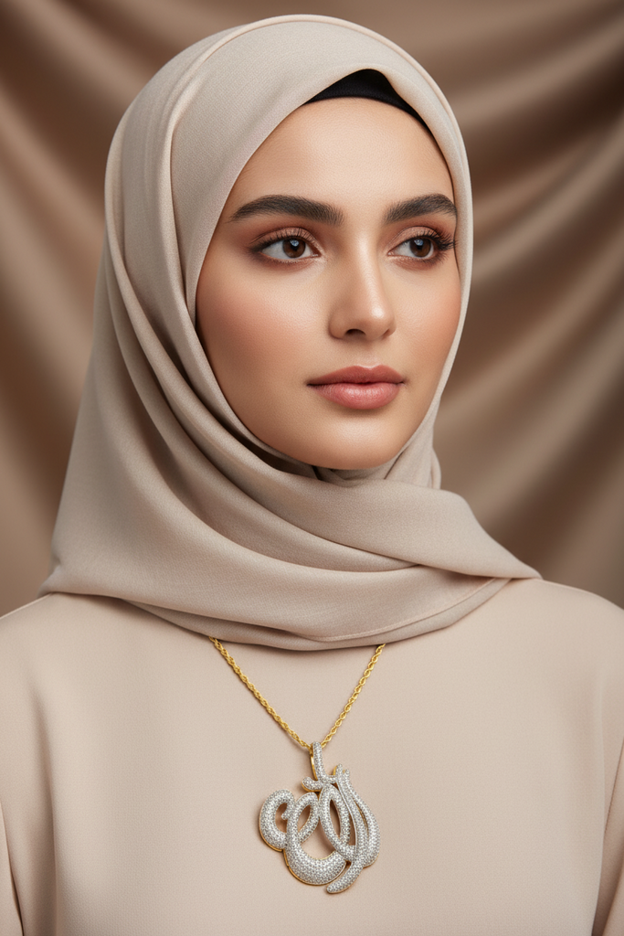 22k high quality gold plated ALLAH pendant set studded with precious zircons and stones.