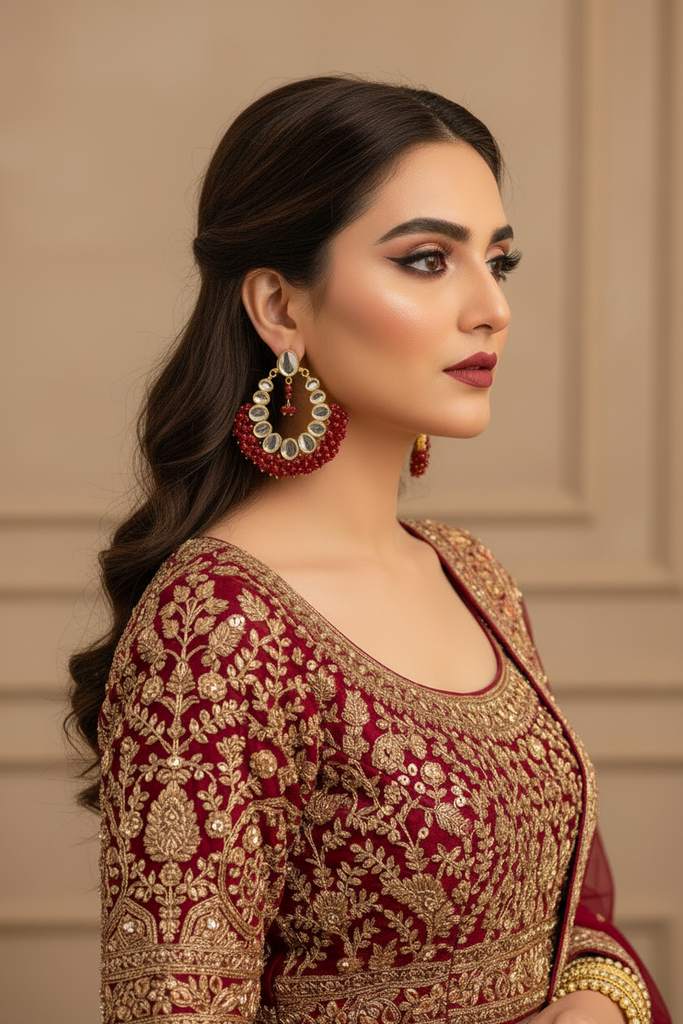 22k gold + rhodium plated high quality earrings studded with kundun and real stones.