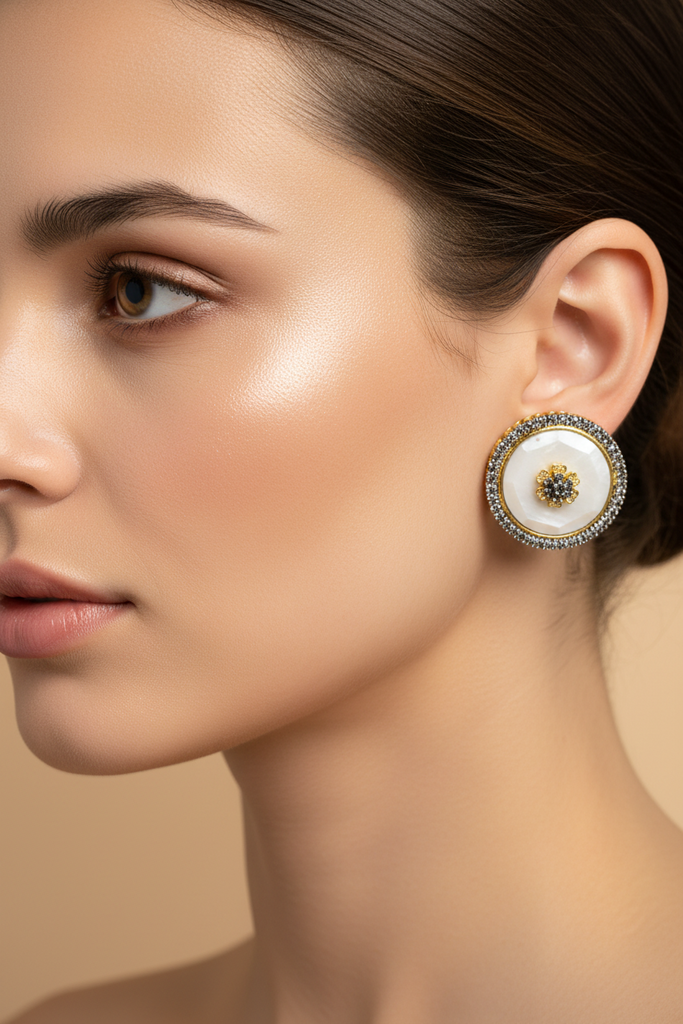 22k gold + rhodium plated high quality ear studs studded with precious stones and real stones.