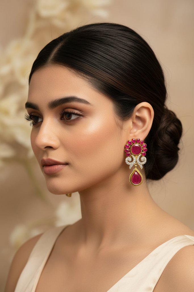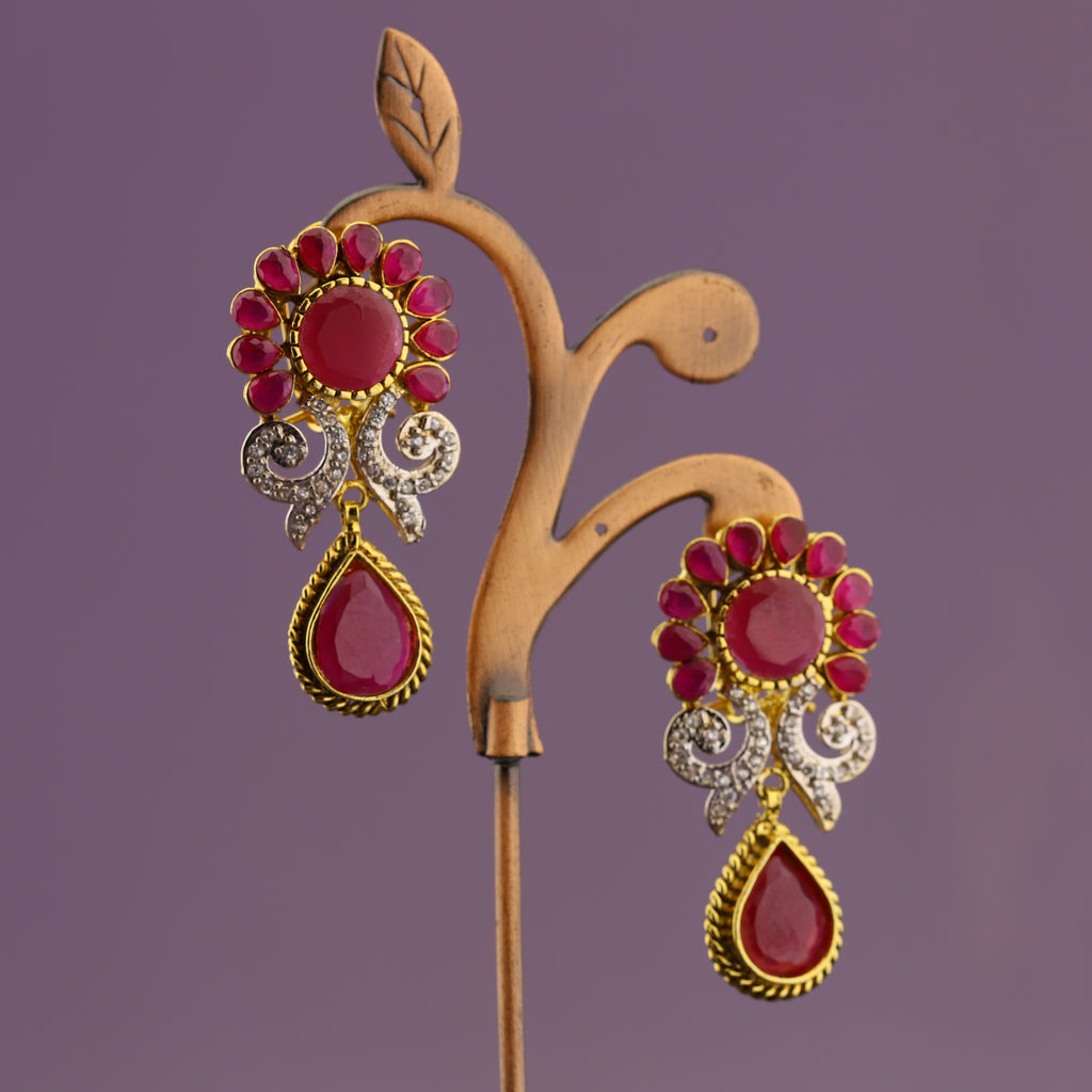 22k gold + rhodium plated earrings studded with precious zircons and stones.