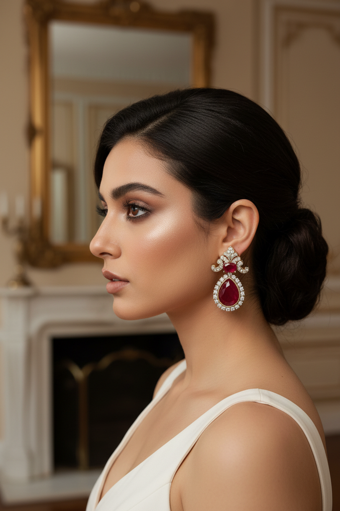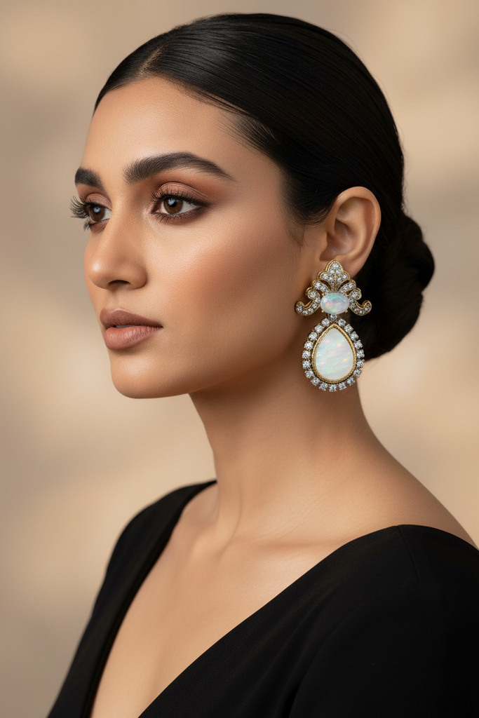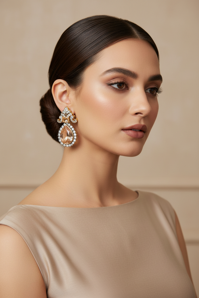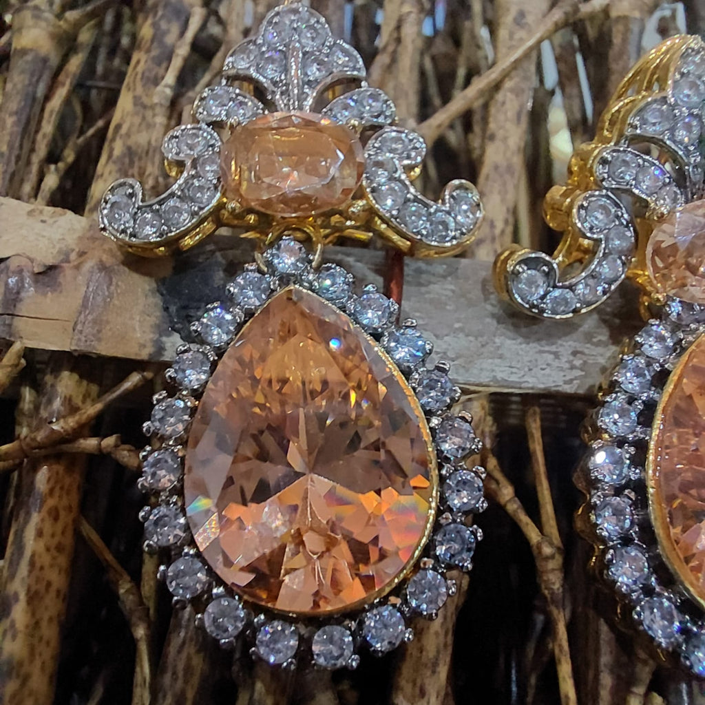 24k gold + rhodium plated high quality earrings studded with precious zircons and stones.premium Quality👌