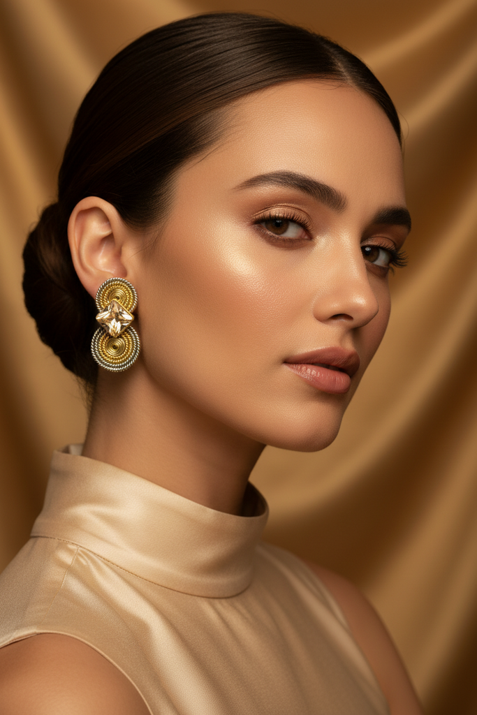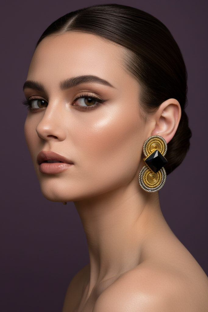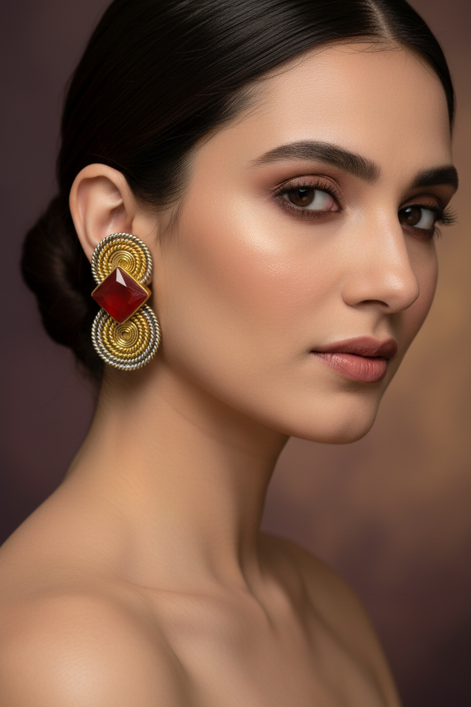 22k gold + rhodium plated high quality hand crafted spiral earrings studded with real stones.