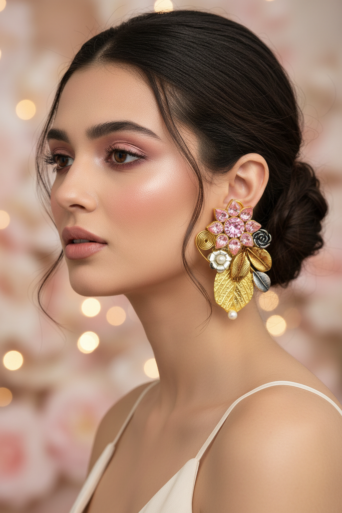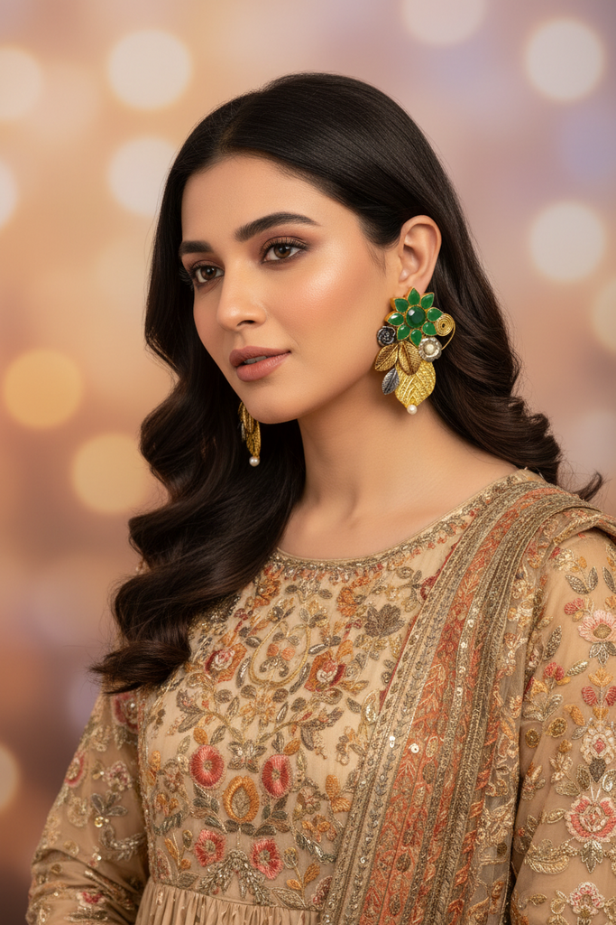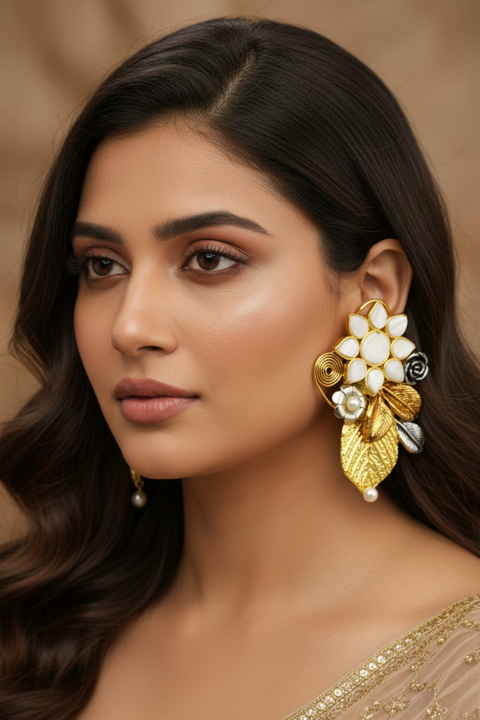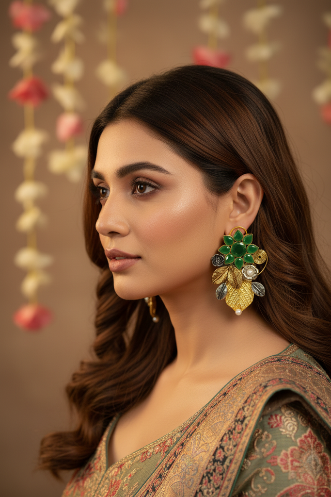 22k gold + rhodium plated hand crafted signature earrings studded with real stones.