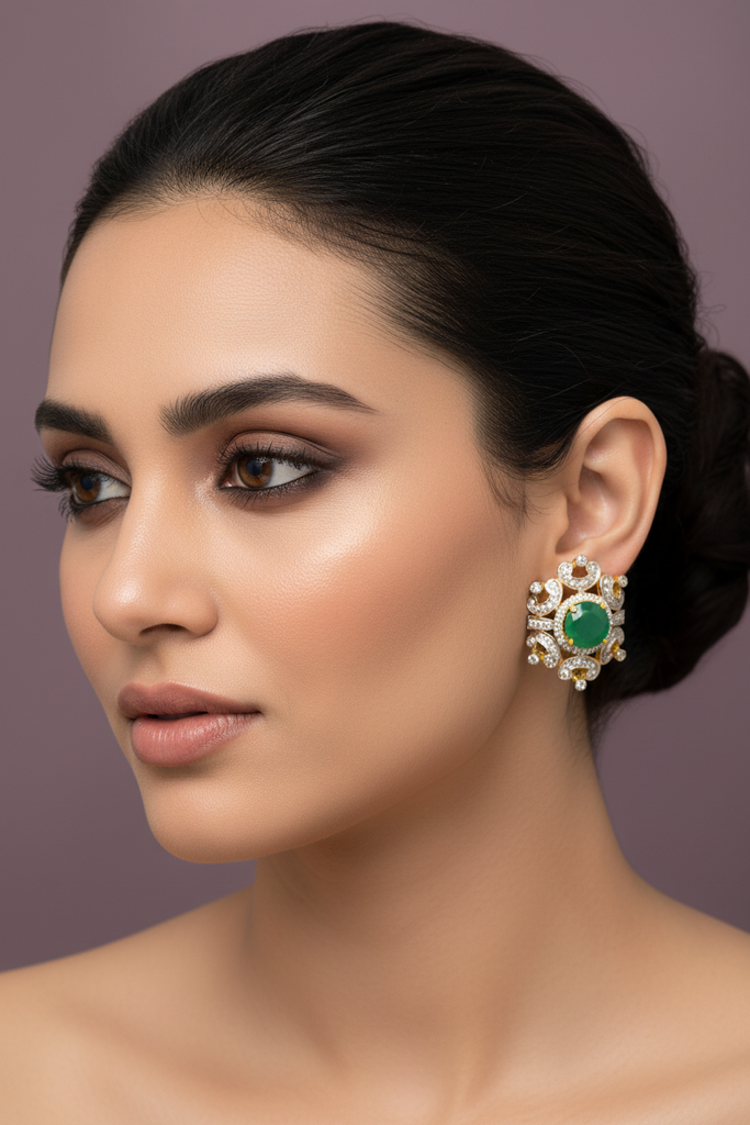 22k gold + rhodium plated earrings studded with precious zircons and real stones.