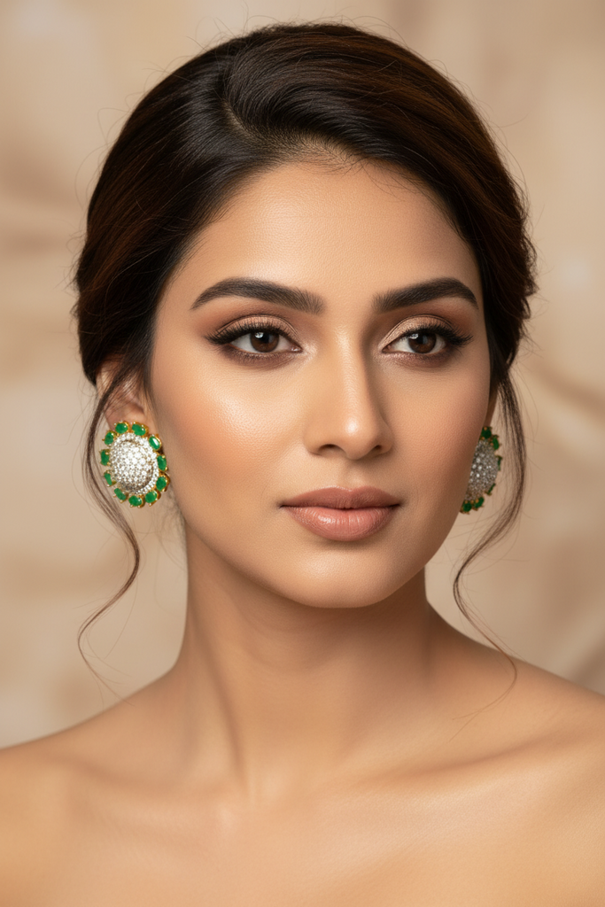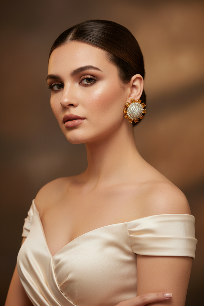 22k gold + rhodium plated high quality earrings studded with precious zircons and stones.