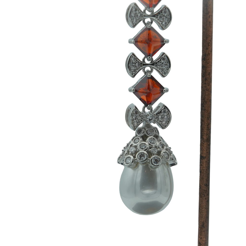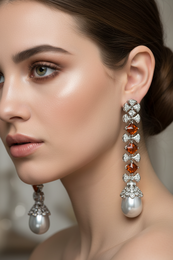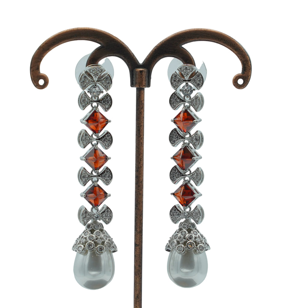 High quality rodhium plated premium quality real BVLGARI earrings studded with real precious zircons, stones and pearls