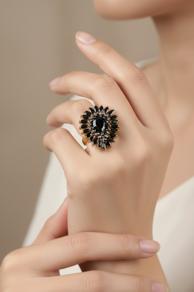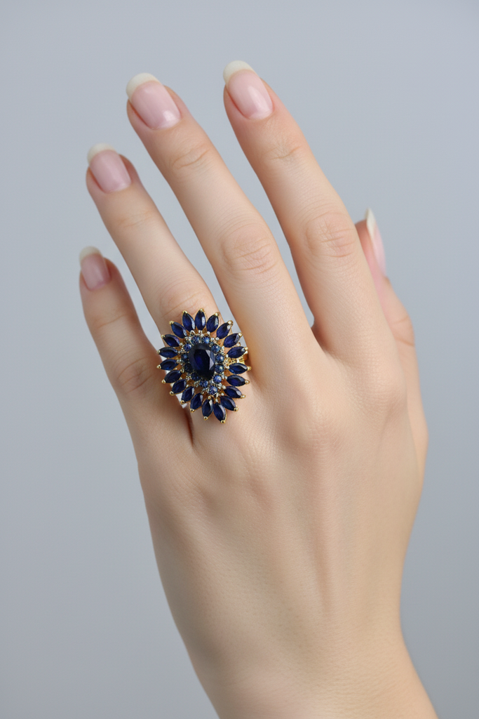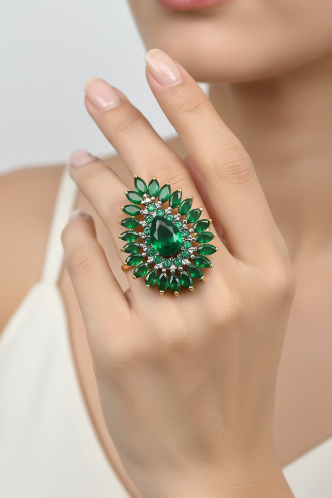 22k gold plated adjustable ring studded with semi precious stones.