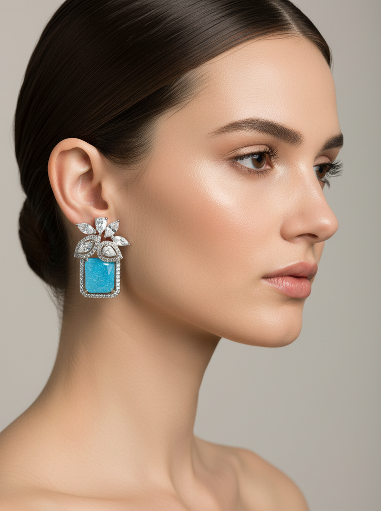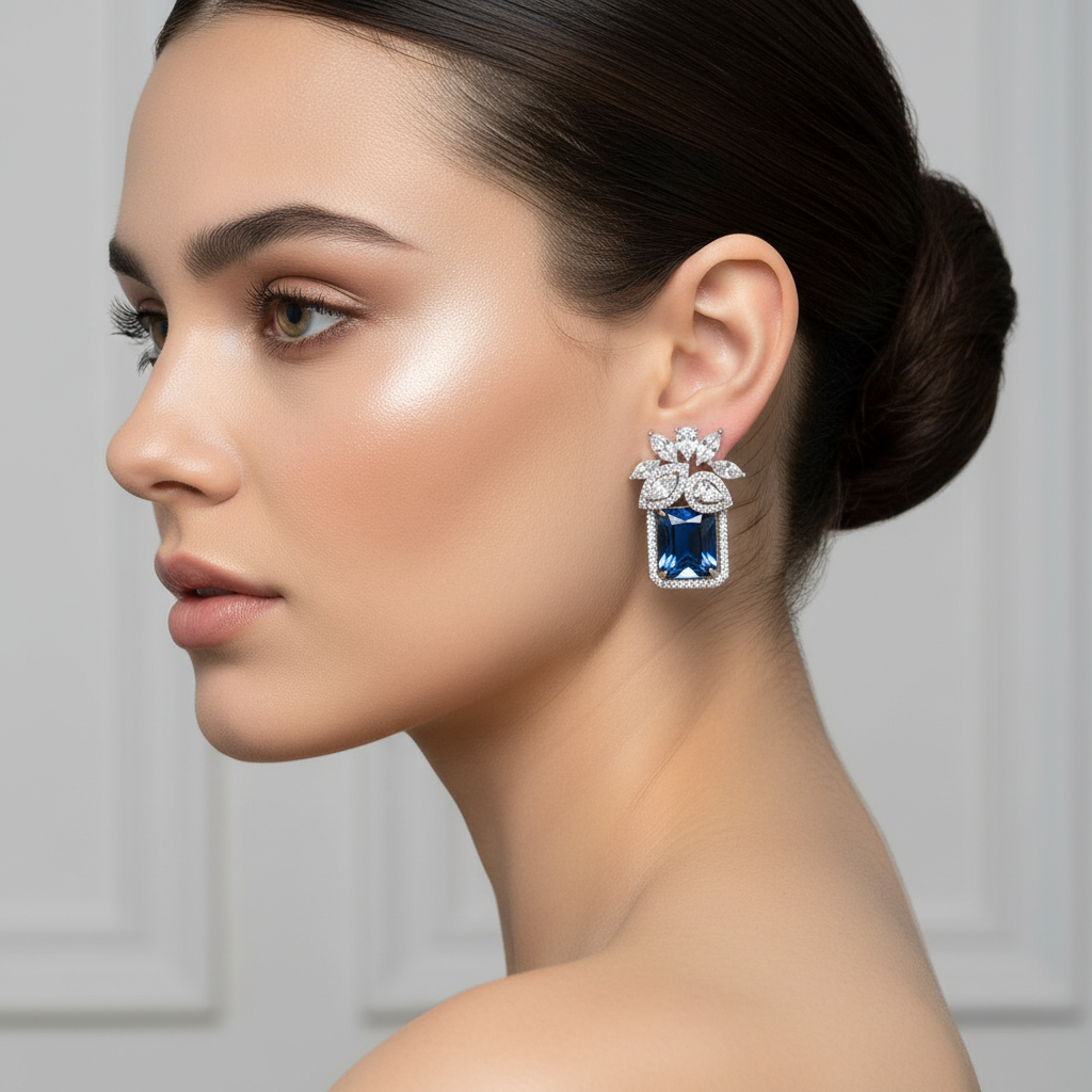 premium quality Rodhium plated ear studs studded with real precious zircons and real premium quality stones.👍