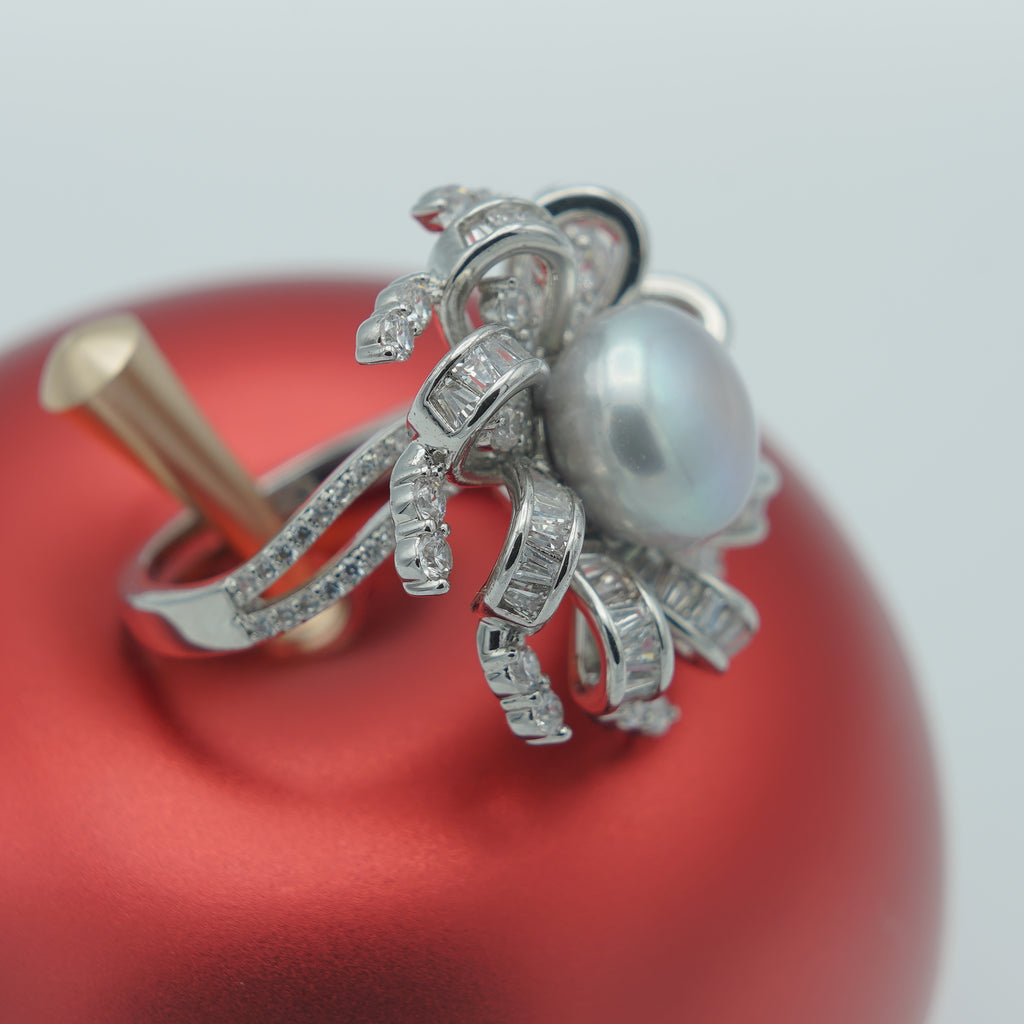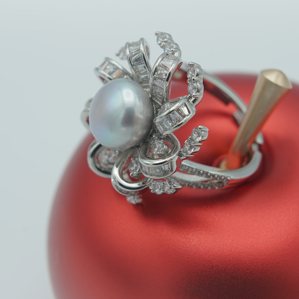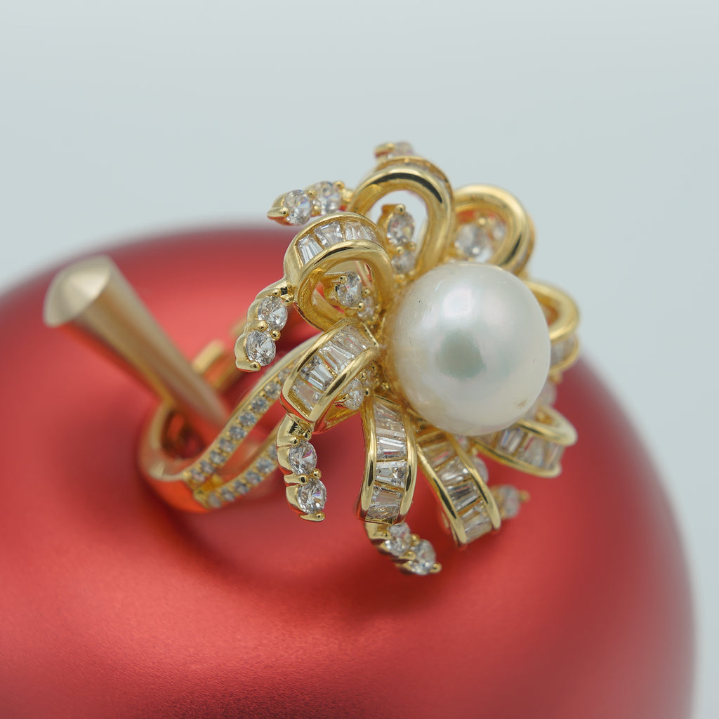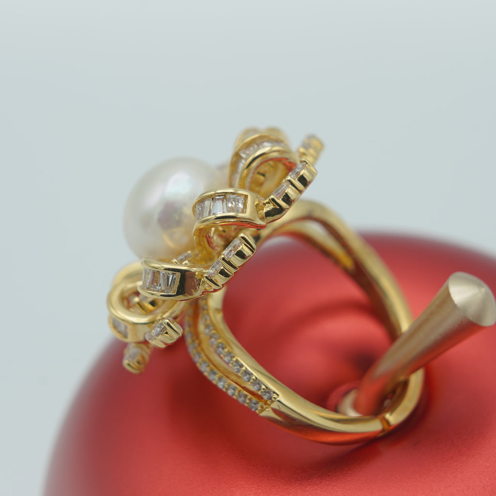 High Quality gold plated and rodhium plated premium quality ring studded with real precious zircons and real pearls