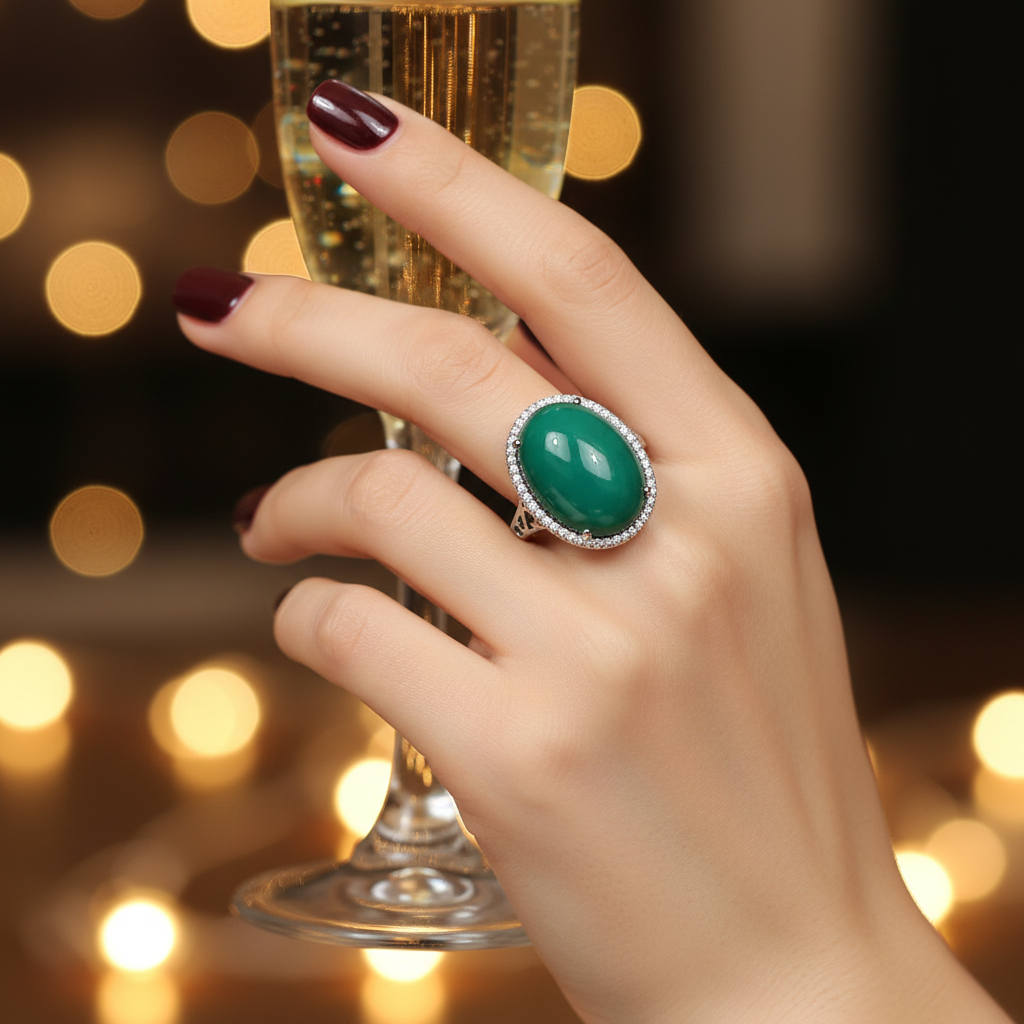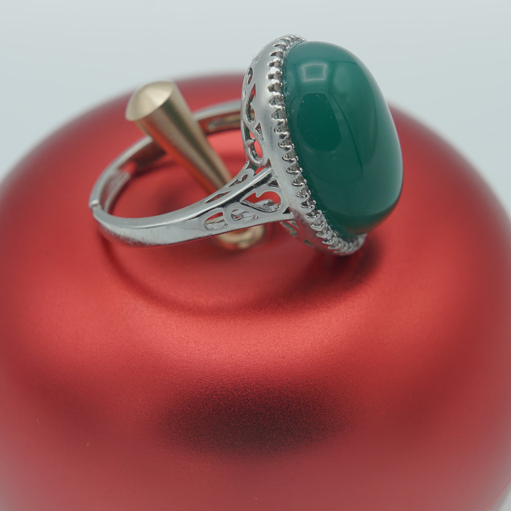High quality rodhium plated double casted ring Italian ring studded with real precious zircons and real Panna stone