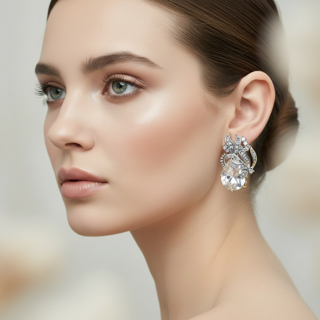 22k gold plated+ rodhium plated premium quality earrings studded with real precious zircons and real stones