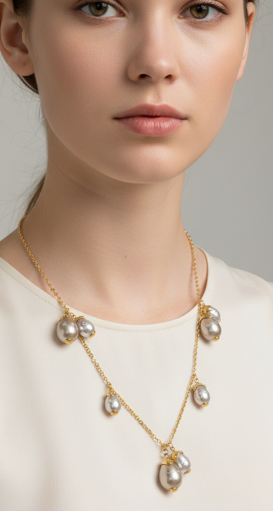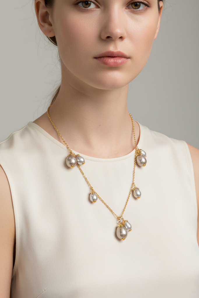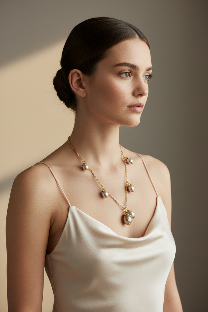High quality gold plated LouisVuitton (LV) long length necklace studded with real precious LV beads.