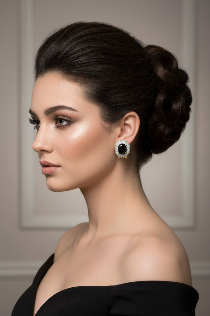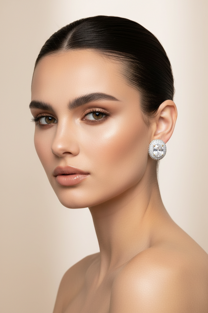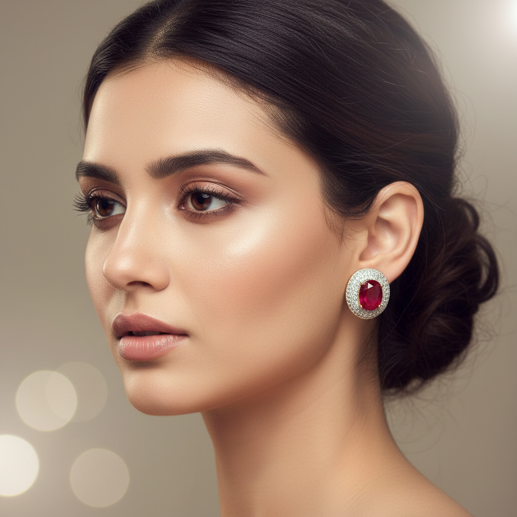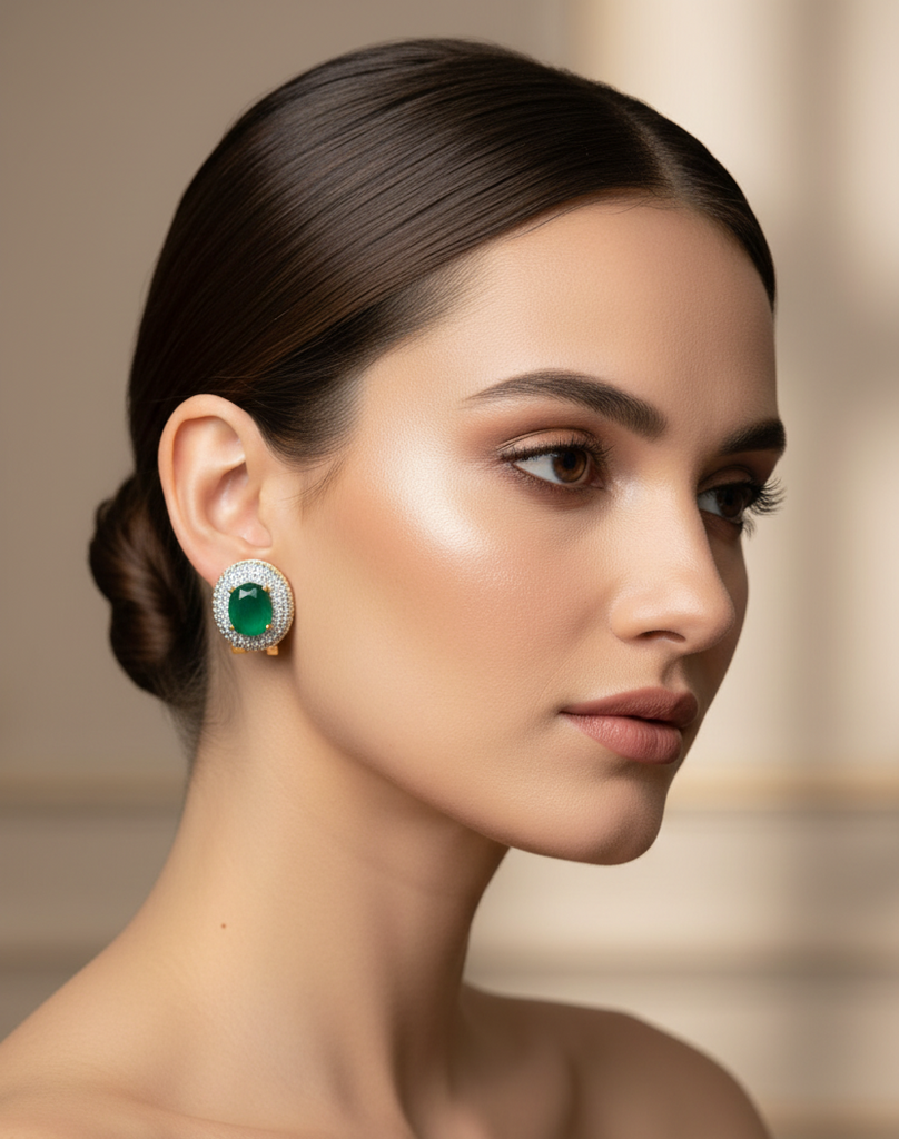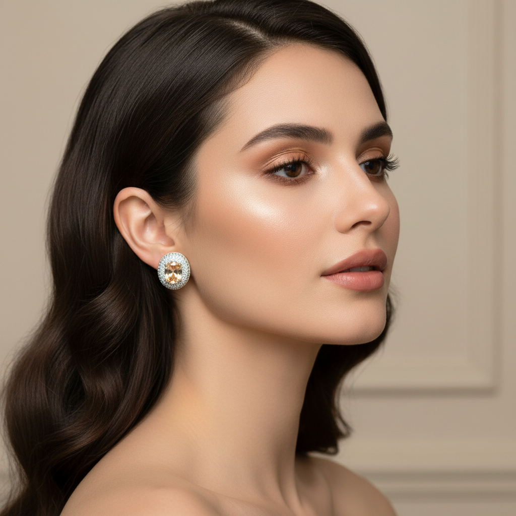 22k gold plated+ rodhium plated premium quality ear studs studded with real precious micro zircons and real premium quality oval shaped stones.šŸ‘