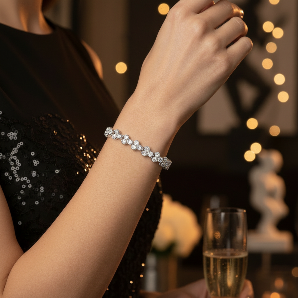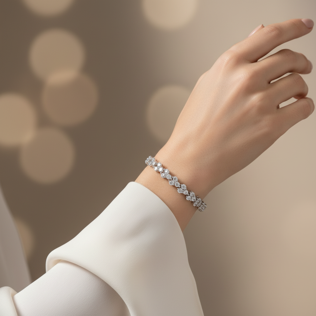 High quality rodhium plated very elegant loose bracelet studded with real precious zircons. Premium quality šŸ‘
