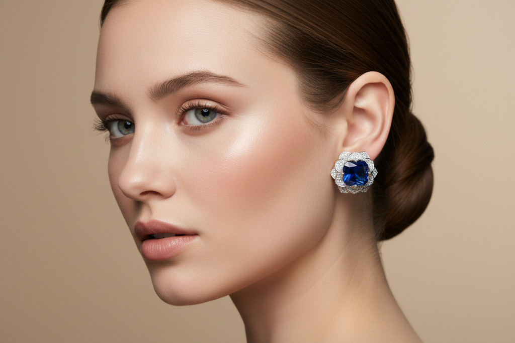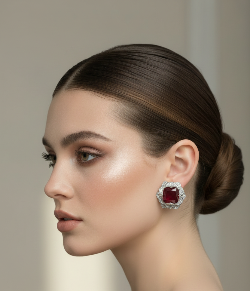 22k gold plated+ rodhium plated premium quality ear studs studded with real precious zircons and real premium quality  stones.👍