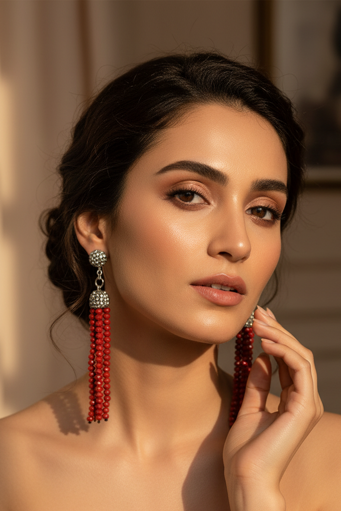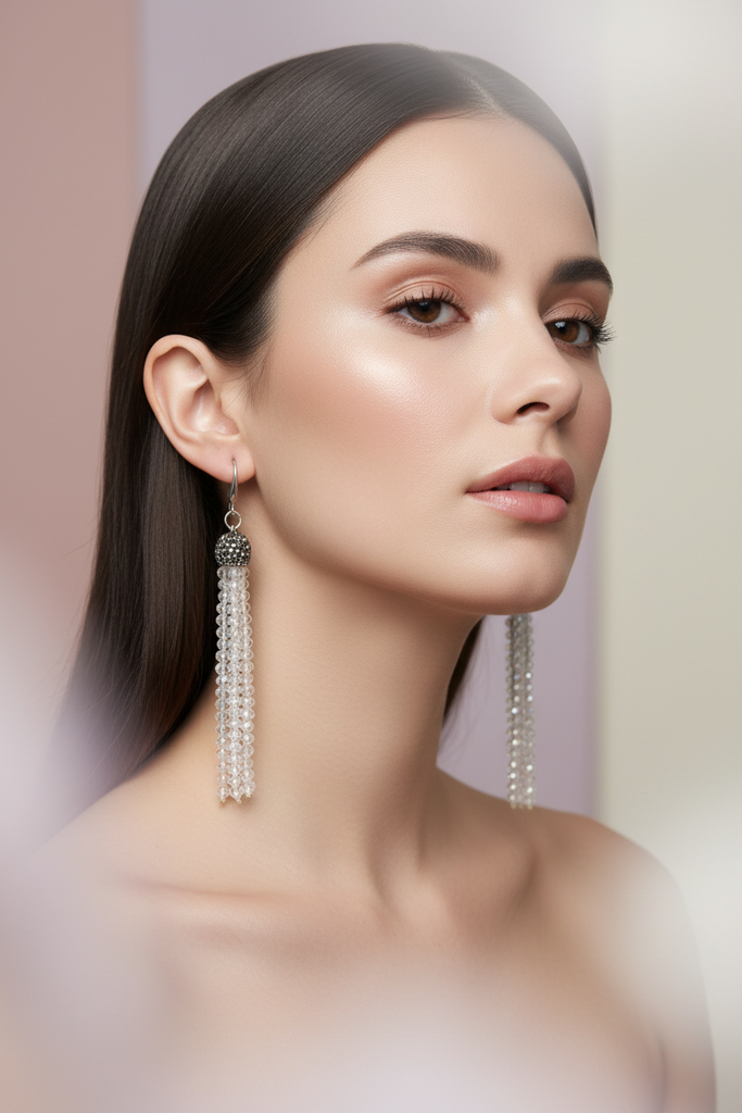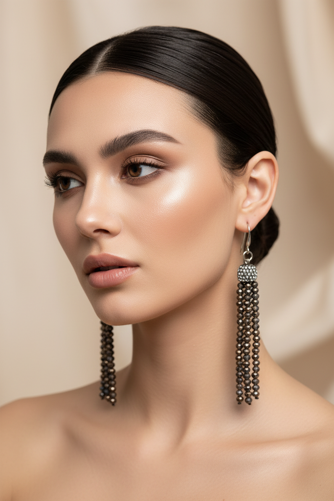 High quality smoky earrings studded with seep and Swarovski's and real beads.
