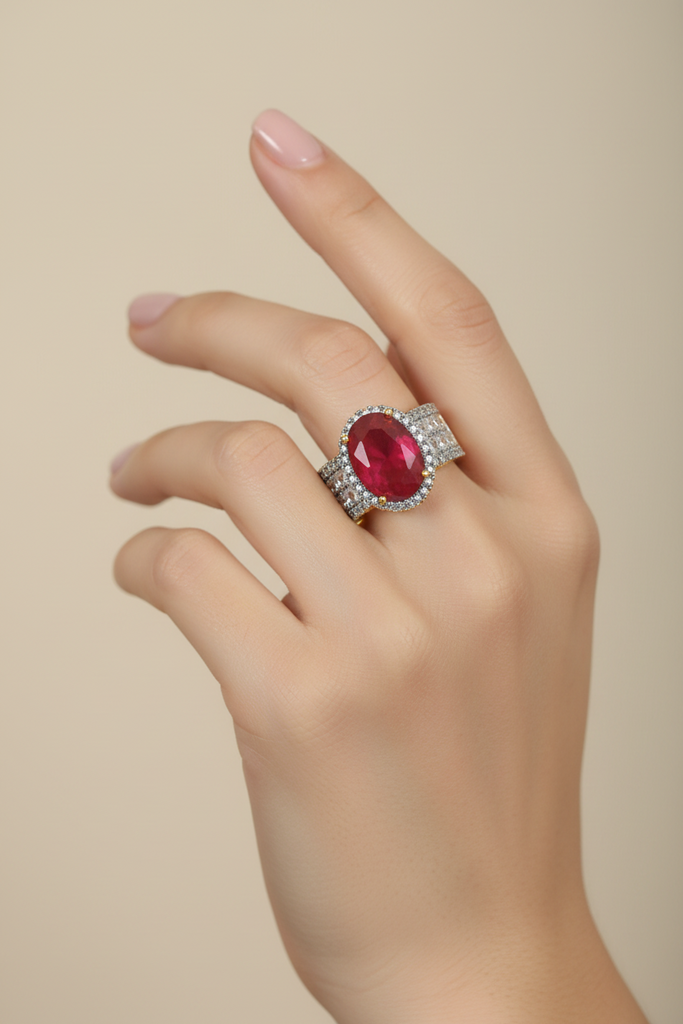 22k gold plated+ rhodium plated premium quality   ring studded with real precious zircons and real premium quality oval shaped stones.👍