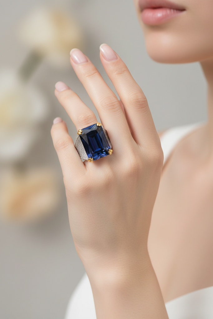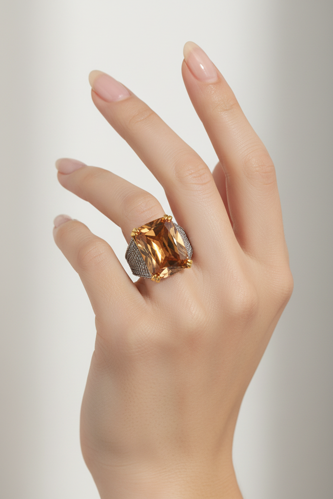 22k gold plated and rodhium plated diamond💎 design very beautiful ring studded with real precious zircons and real stones.
